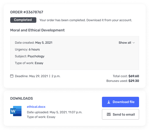 The next part of the process involves picking your academic level and deadline. The academic level will allow us to find the writer with the right credentials for your project. Our writing experts can complete it for you in as little as 6 hours.